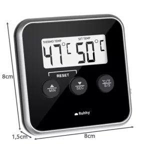 Digitalni kuhinjski termometar sa sondom mjeri temperature od -20 do 250°C i idealan je za pečenje mesa, pripremu ulja, umaka ili dimljenje. Ima veliki LCD zaslon, magnet za pričvršćivanje i zvučni alarm koji vas upozorava kada jelo dostigne zadanu temperaturu, kao i praktični timer. Precizan kuhinjski pomoćnik za bolje rezultate bez nagađanja.
