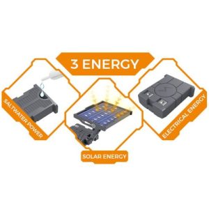 • Načini napajanja: sončna energija / slana voda (kemična energija) / električna energija