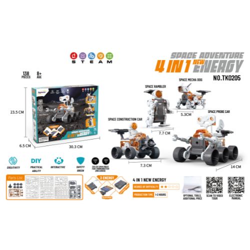 Gradbeni komplet – Vesoljska Dogodivščina / Nova energija 4v1, 138 kosov (8+) je igrača, ki otroku na zabaven način približa različne vire energije in mehanski prenos. Omogoča napajanje s sončno energijo, slano vodo in električno energijo ter spodbuja logično razmišljanje, ročne spretnosti in okoljsko ozaveščenost. Odlična izbira za radovedne male raziskovalce.