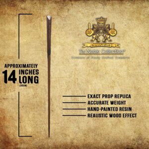 Zavedajte se, da so Noble Collection palice iz smole, avtentične ročno poslikane replike rekvizitov in so zaradi tega zasnovane kot zbirateljski predmeti in ne igrače. Na žalost ne vsebujejo prave čarovnije, zato obstaja možnost poškodb, če vam padejo na tla ali se z njimi nepravilno ravna.