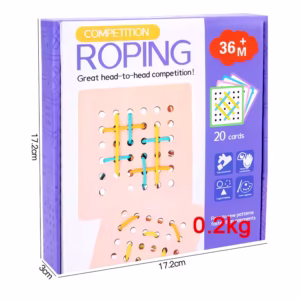 👶 Prijazna otrokom – Izdelano iz kakovostnih materialov, ki so varni za otroke. Površina lesenih plošč je gladka, vrvice pa so mehke in enostavne za uporabo.