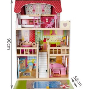 • cmTENTO MODEL JE JEDEN Z NAJVÄČŠÍCH MODELOV NA TRHU - domček pre bábiky má 90 ! Je vyrobený z masívneho dreva a jeho konštrukcia je mimoriadne odolná. Všetky prvky sú starostlivo spracované, dokonale vyhladené a bezpečné pre dieťa. Vďaka svojej výške sa s ním môžu pohodlne hrať aj väčšie deti. Okrem toho je domček veľmi stabilný - počas hry na dieťa nespadne.