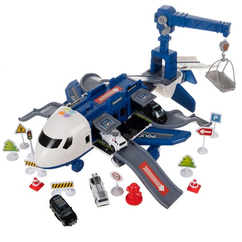 EXTRÉMNE ZÁBAVNÉ: Toto zdanlivo obyčajné lietadlo je v skutočnosti mobilná policajná stanica, skladacie parkovisko a dopravné vozidlo na prvom poschodí. Táto hračka, skladacie policajné lietadlo s parkoviskom a pohyblivým výťahom, je atraktívna a inovatívna hračka, ktorá v sebe spája množstvo funkcií a doplnkov a poskytuje deťom hodiny tvorivej zábavy.